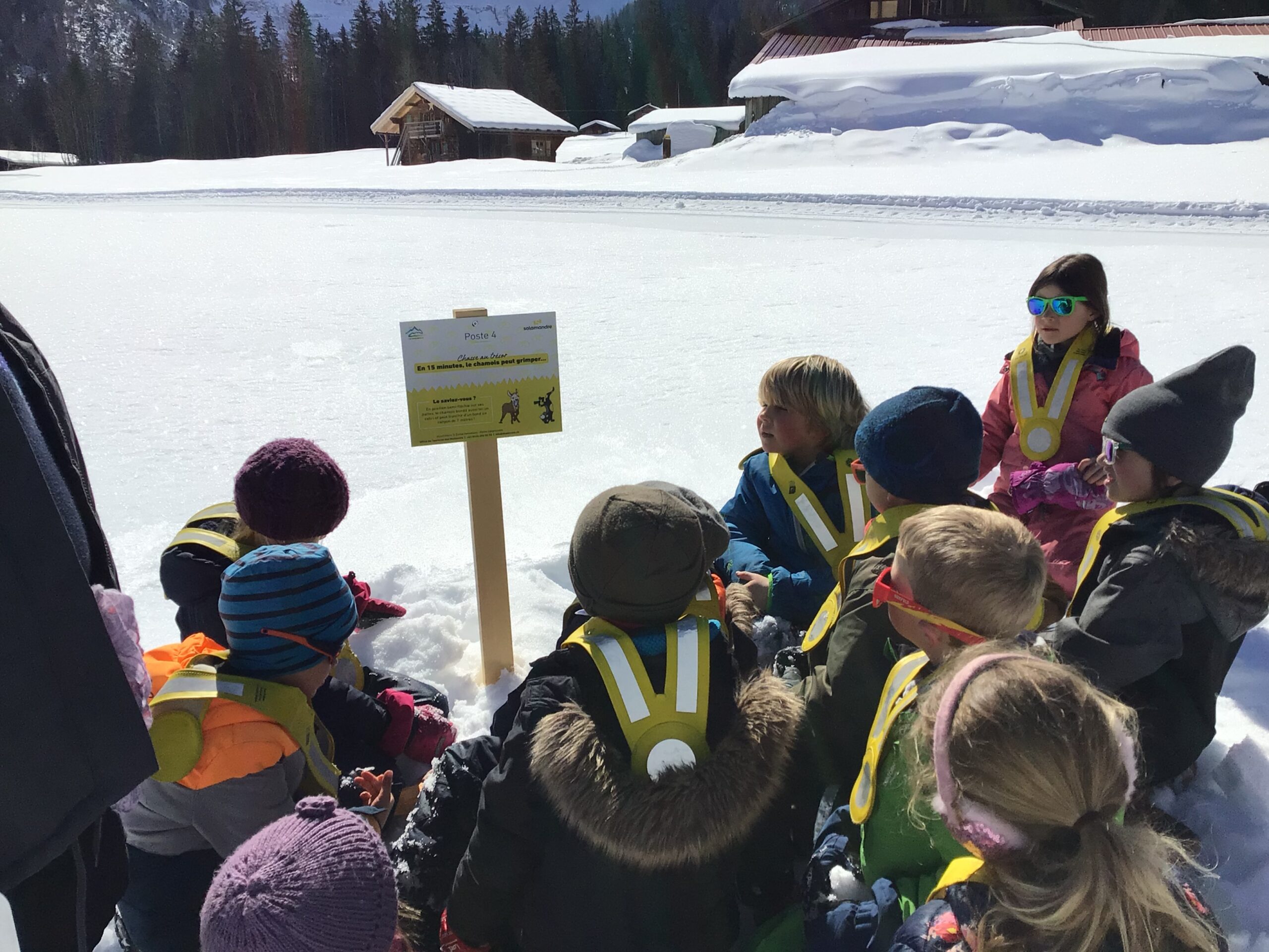 Mercredi 24 mars : avec cette magnifique météo, impossible de rester en classe, alors en route pour la chasse au trésor de « la salamandre ». Joli parcours dans la neige pour améliorer nos connaissances sur le chamois et la marmotte .