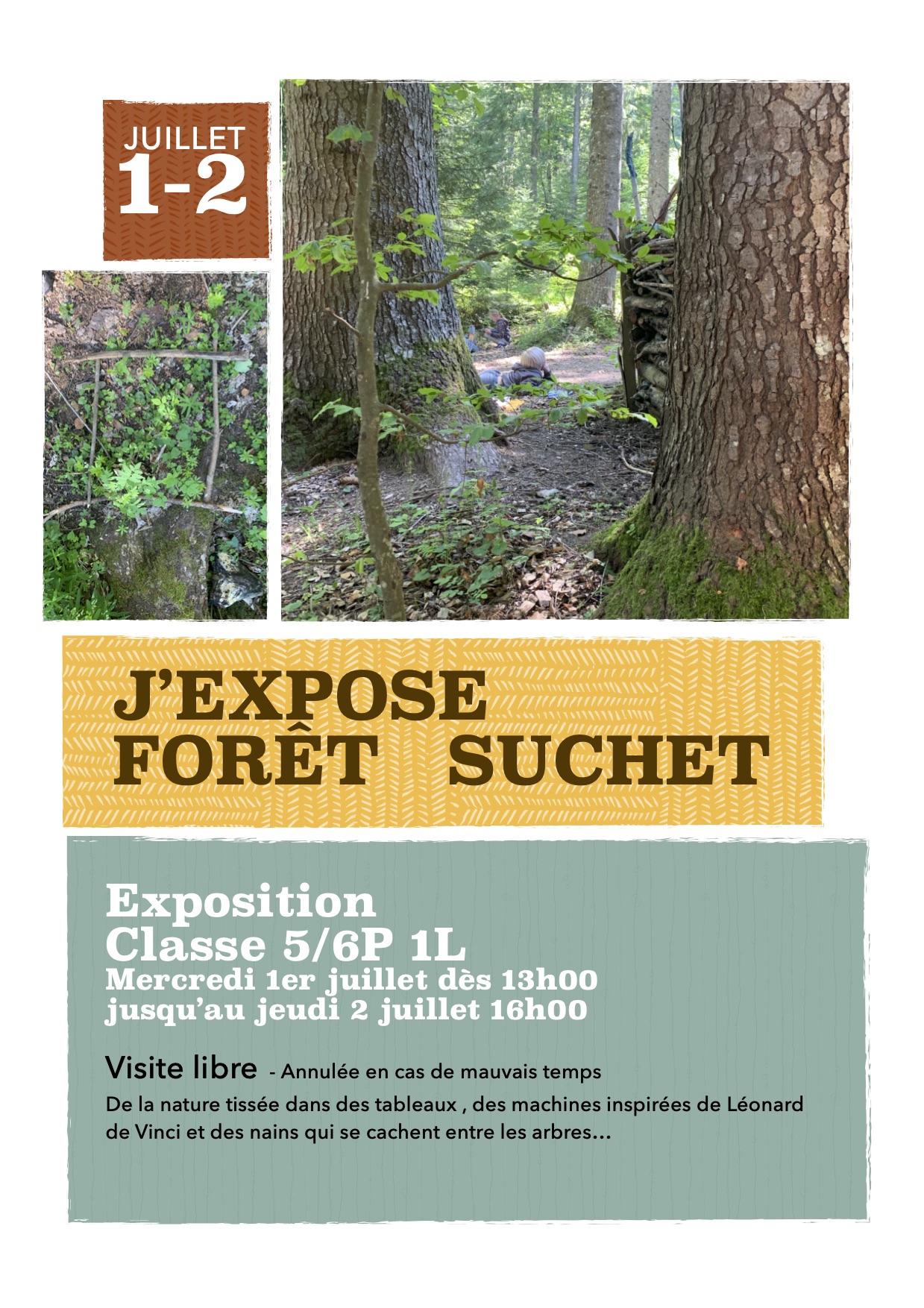 Exposition “école en forêt” au Suchet les 30 juin et 1er juillet 2020