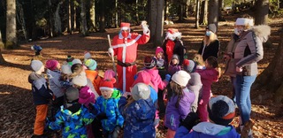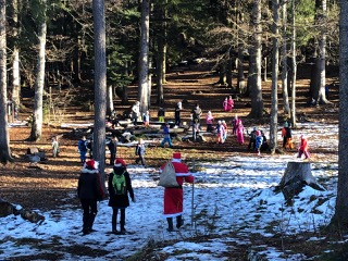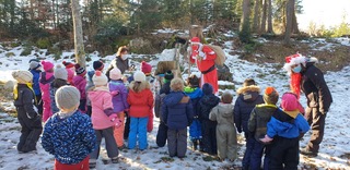 Le père Noël est venu rendre visite aux élèves de 1-2P de Leysin. Les rennes ont pu se reposer dans les bois du Suchet.